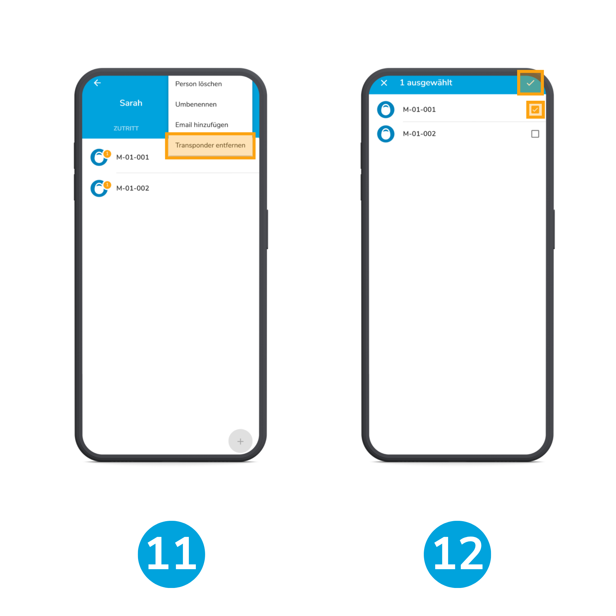 Wenn du die Transponder entfernst, musst du sie anschließend synchronisieren, damit sie keinen Zugriff mehr haben.