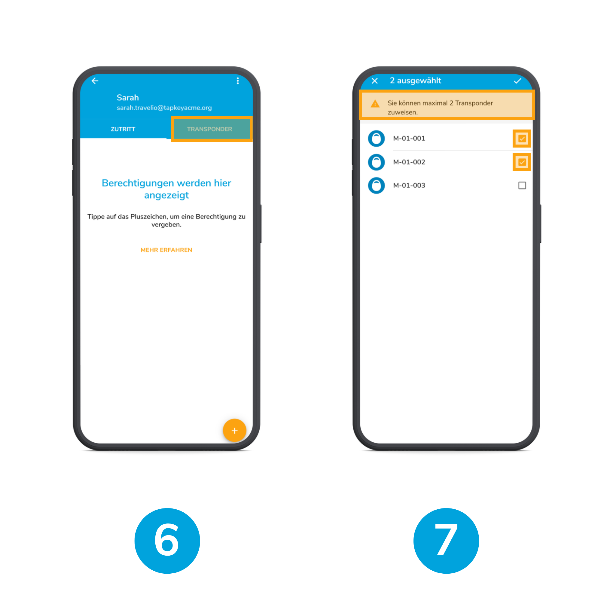 Wichtig: Pro Person können maximal zwei Transponder zugewiesen werden Jeder Transponder unterstützt bis zu 12 Berechtigungen