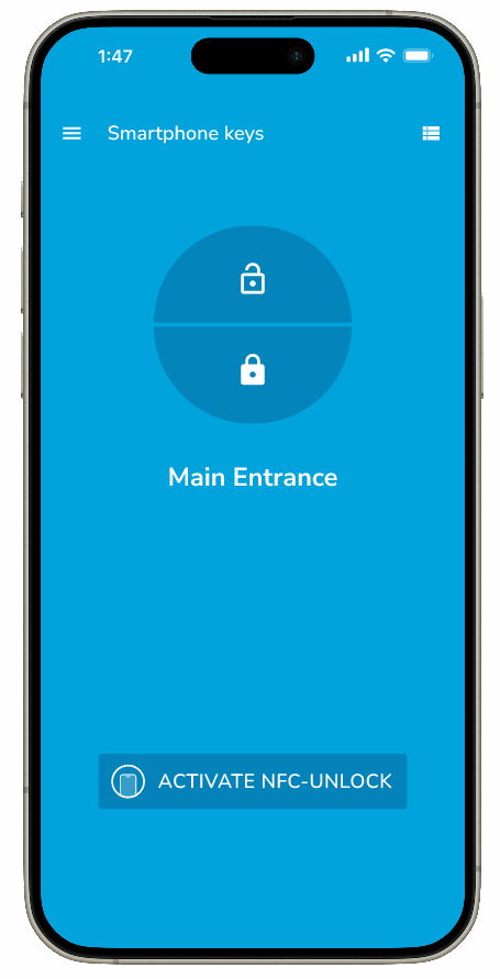 Tapkey now supports NFC (Near-field communication) on iPhones running iOS 17.4 or later. This feature allows your iPhone to emulate a transponder and unlock Tapkey Smart Locks without needing to manually select a lock in the app.