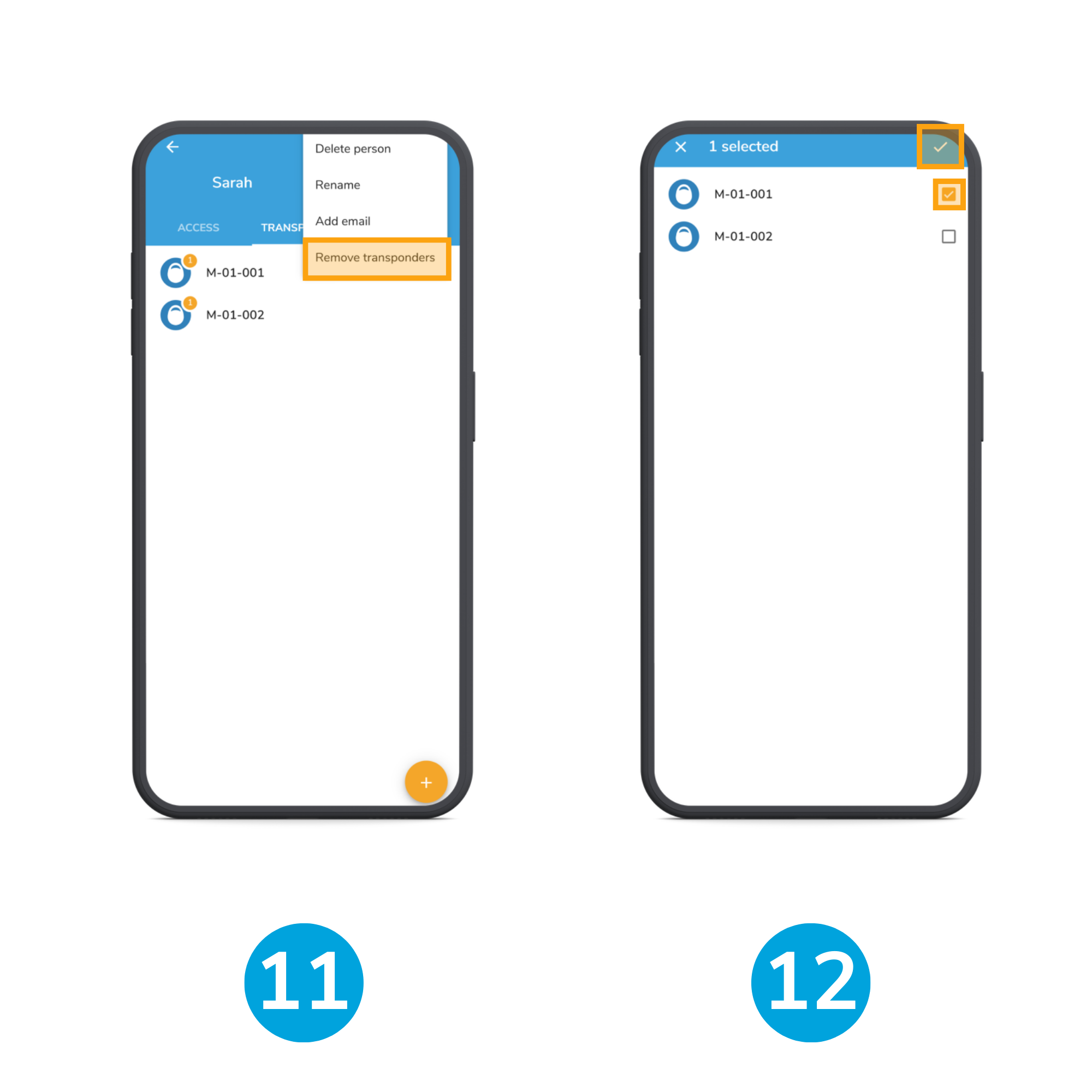 Note: After removal, the affected transponders must be synchronised to ensure they no longer have access to the locks.