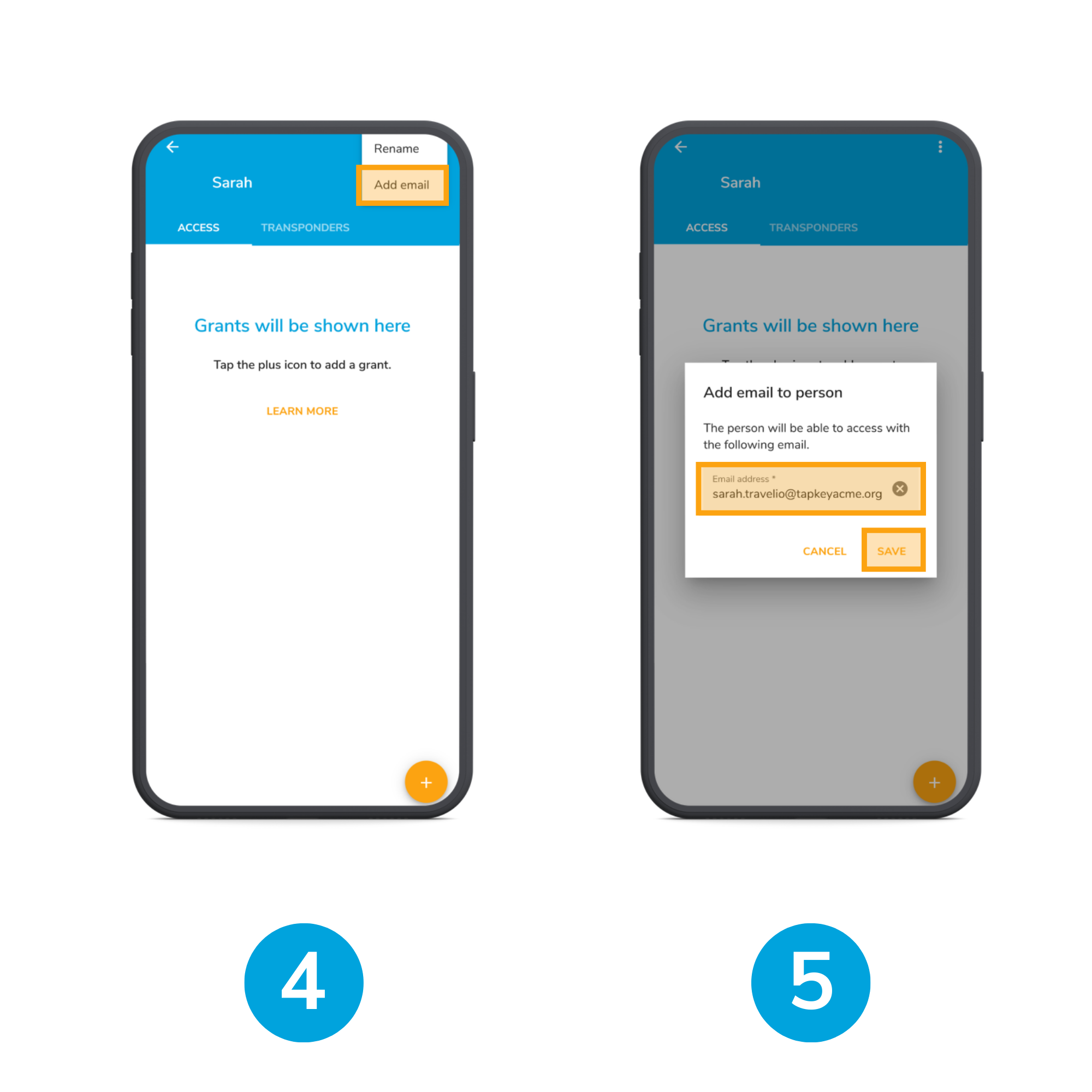- Enter the email address and tap Save.